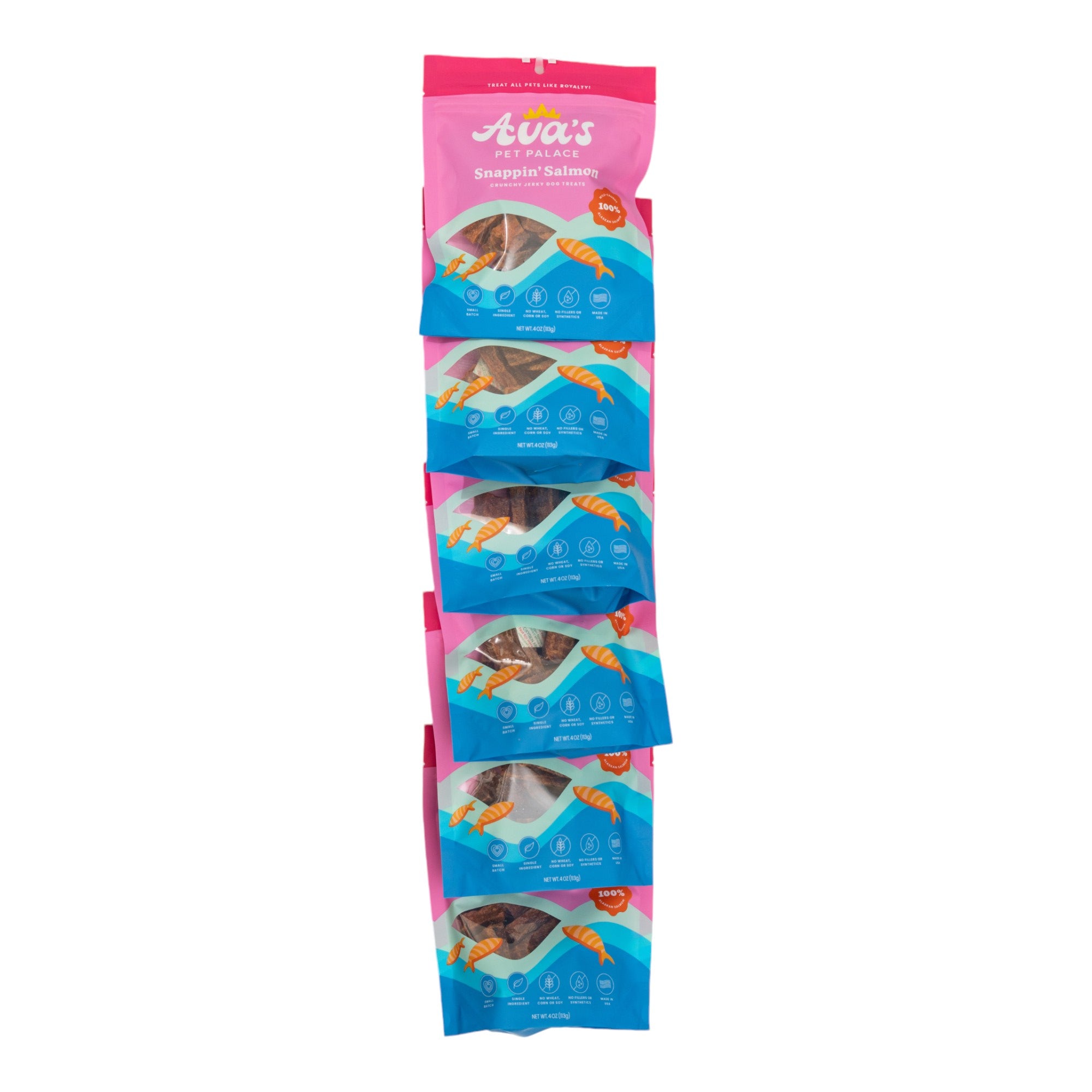 Introducing Ava's Pet Palace Single-Ingredient 100% Wild Alaskan Snappin' Salmon Treats – the ultimate healthy, delicious treat for dogs! Made from responsibly sourced, wild-caught Alaskan salmon, these treats are rich in omega-3 fatty acids, promoting a shiny coat and healthy skin. Perfect for health-conscious pet owners and dogs with dietary sensitivities. Each 4 oz bag provides a high-protein, low-fat treat that dogs love.