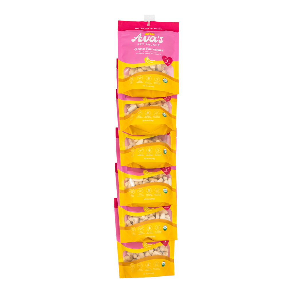 Dogs go bananas for oven-baked biscuits made with just seven all-natural, organic ingredients. At only 10.5 calories per treat, these heart-shaped delights offer a tasty and healthy snack for customer's dog. Made with organic oat flour, brown rice flour, banana, flaxseed, egg, and cinnamon, these treats are free from preservatives and additives, making them perfect for health-conscious pet owners.