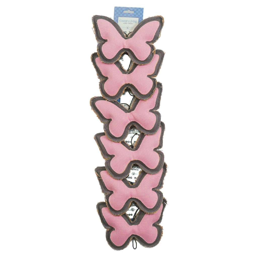 Experience the perfect blend of durability and environmental stewardship with our Country Living Butterfly-Shaped Dog Chew Toy. The set includes six toys, conveniently packaged with a clip strip and S-hook for easy storage and display.