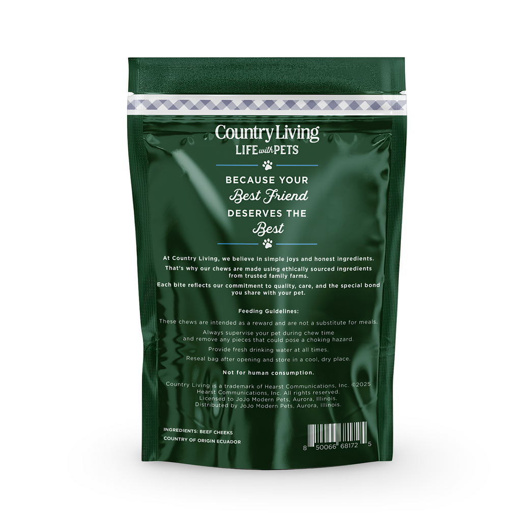 Perfect for daily treating or boredom-busting chew sessions, Country Living Beef Cheek Chips contain no rawhide, grains, fillers, artificial preservatives, or colors — just natural goodness your dog will love.