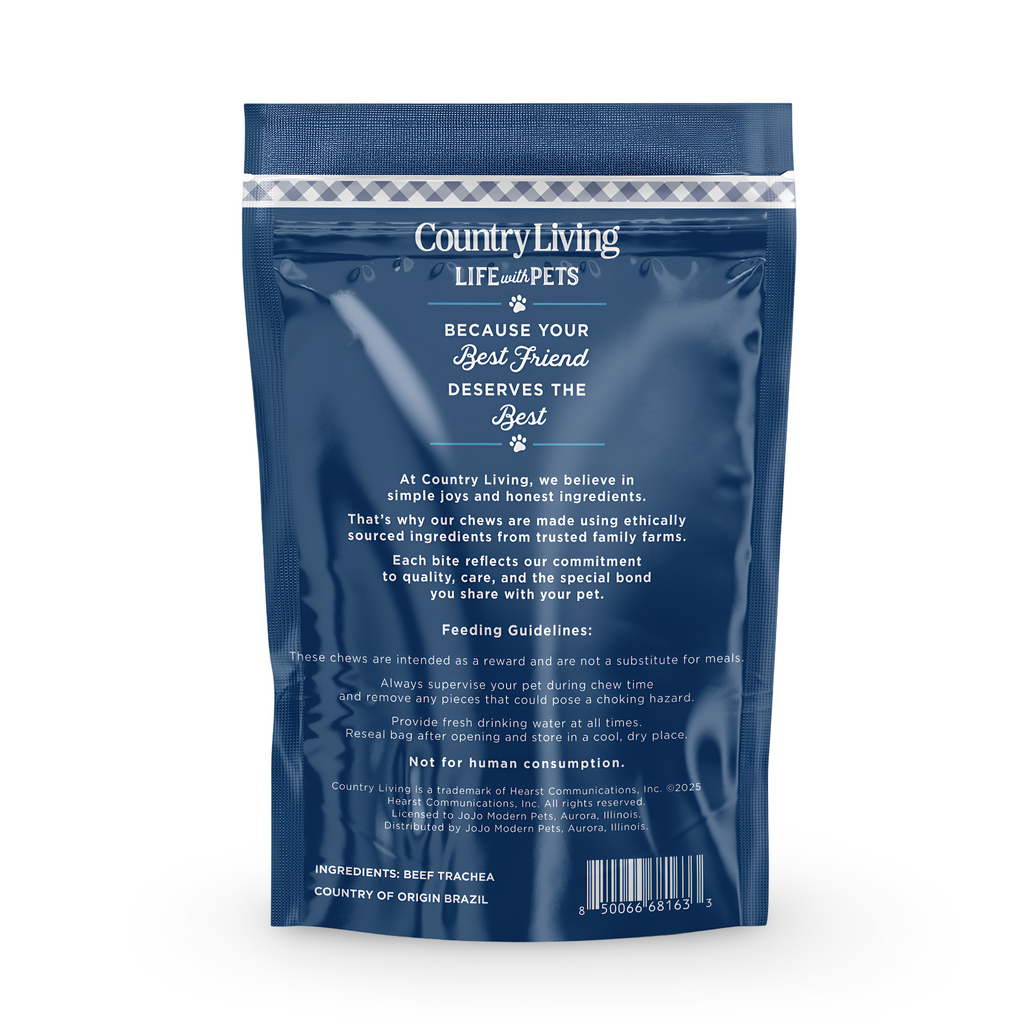 Perfect for medium to large dogs or strong chewers, Country Living Beef Trachea provides natural joint support and a delicious, engaging chewing experience in every bite.
