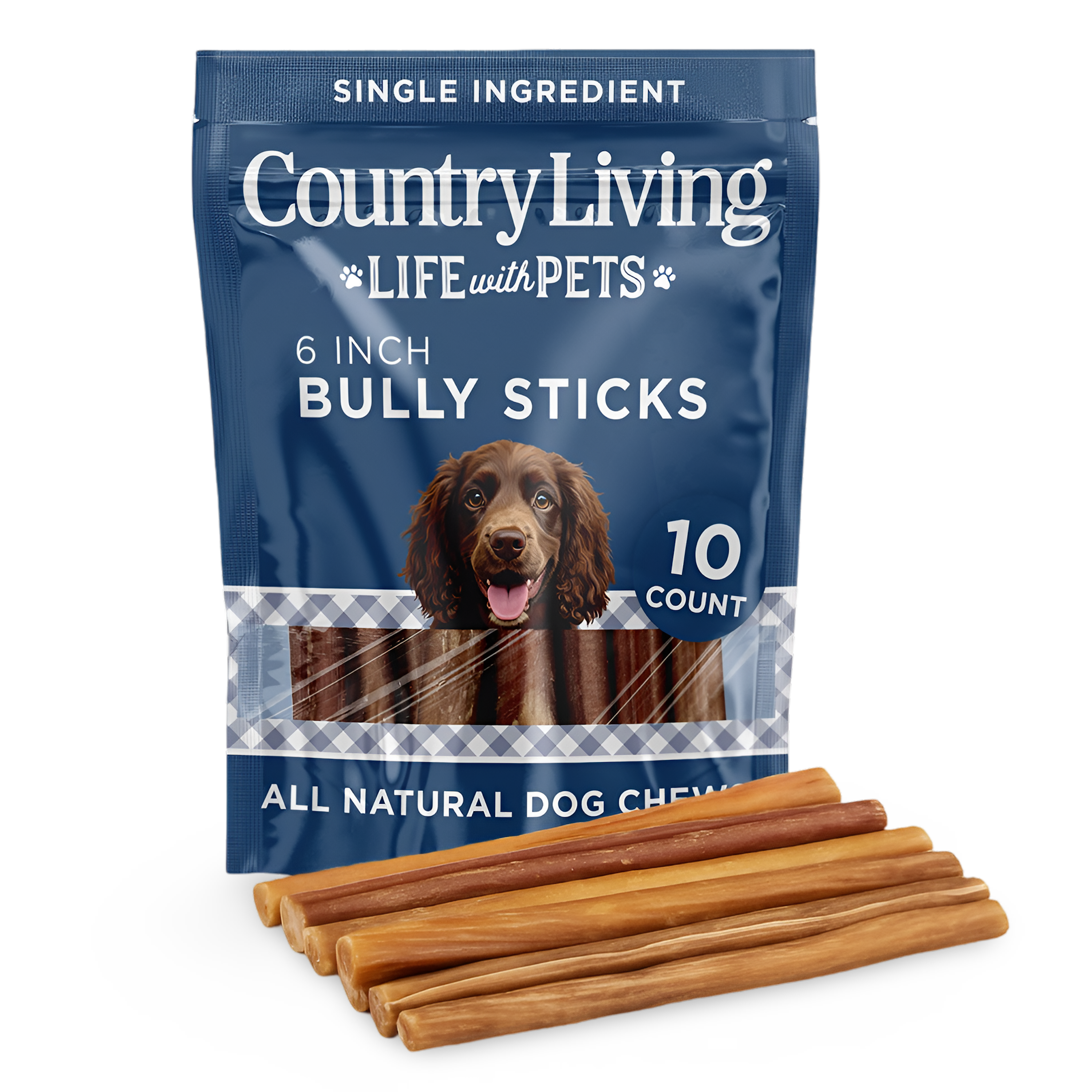 - Convenient 5-Pack of 6” Bully Sticks — Resealable Country Living 10-count bag offers great value — perfect for keeping your dog happily chewing.