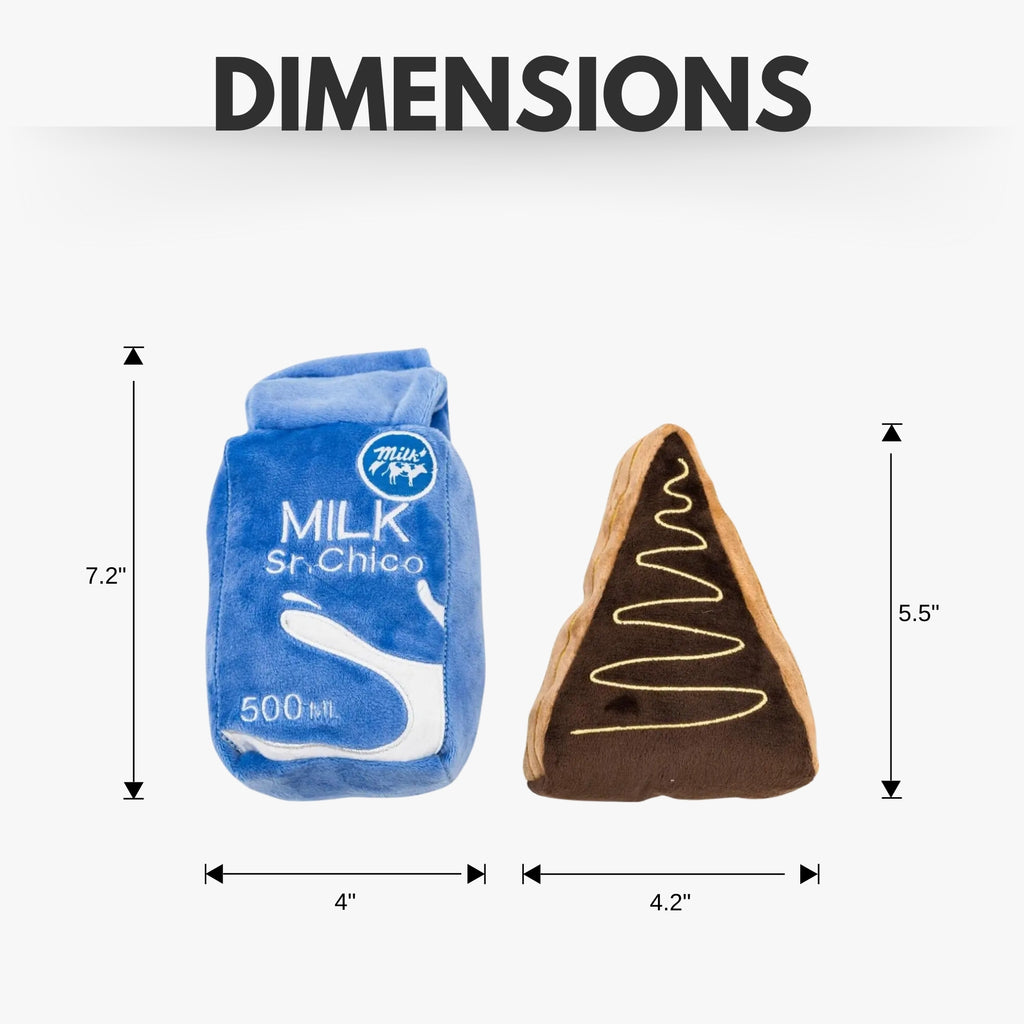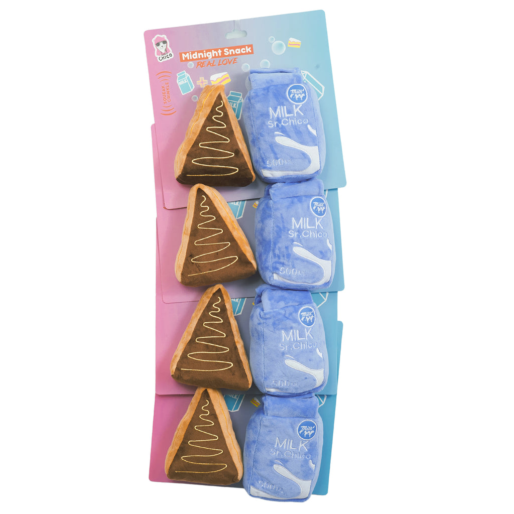 Drawing inspiration from the profound connection between dogs and their human companions, our BFF series captures the essence of 'real love' with the Milk and Cake Midnight Snack Plush Dog Set. This charming pair, evoking classic food pairings, offers more than just cuteness to your dog's playtime; it represents the shared happiness and humor between dogs and their owners.