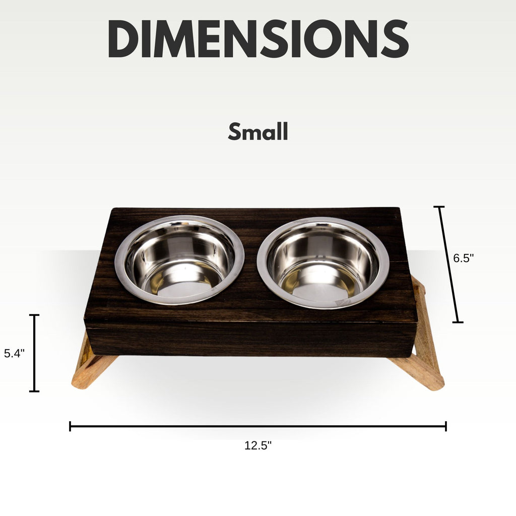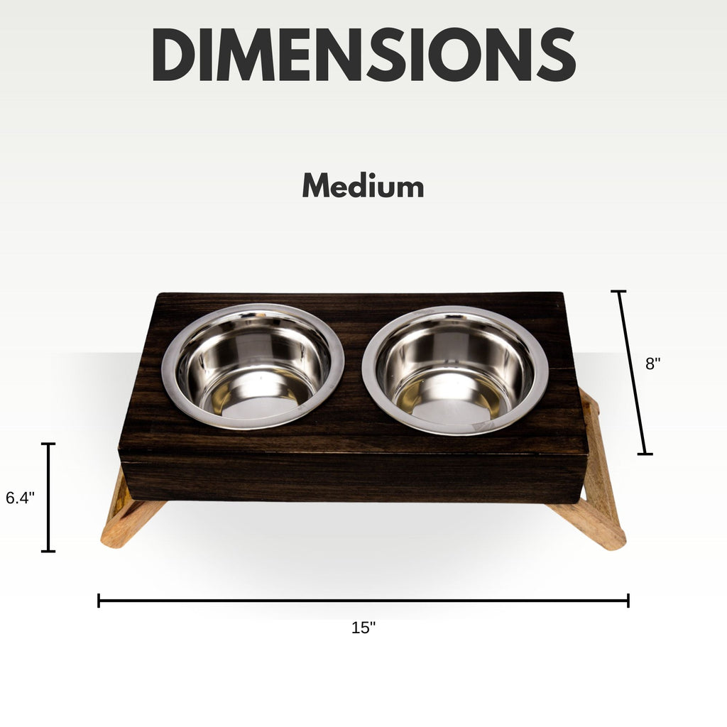 Enhance your product line up with this stylish and eco-conscious elevated dog feeder, expertly crafted from premium solid mango wood. The polished finish highlights the natural dark brown wood, adding a touch of elegance to any home, while the durable stainless steel bowls (12 oz. for Small and 24 oz. for Medium) provide a practical, easy-to-clean feeding solution.