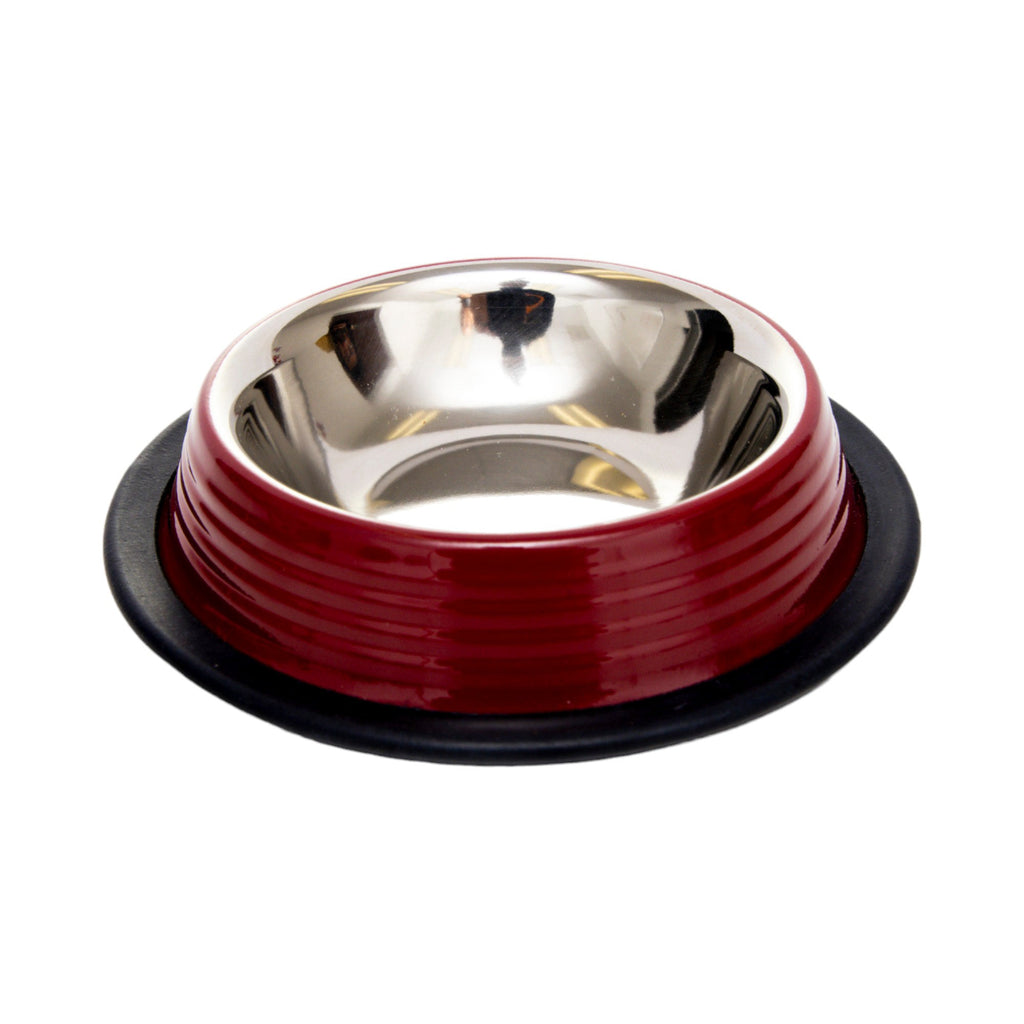 Presenting our Stainless Steel Merlot Red Non-Skid Ribbed Bowls, designed to make a statement with their vibrant, high-gloss, powder-coated exterior. The reflective ribbed texture enhances their visual appeal, while the polished stainless steel interior ensures durability, resisting stains, scratches, and dullness.