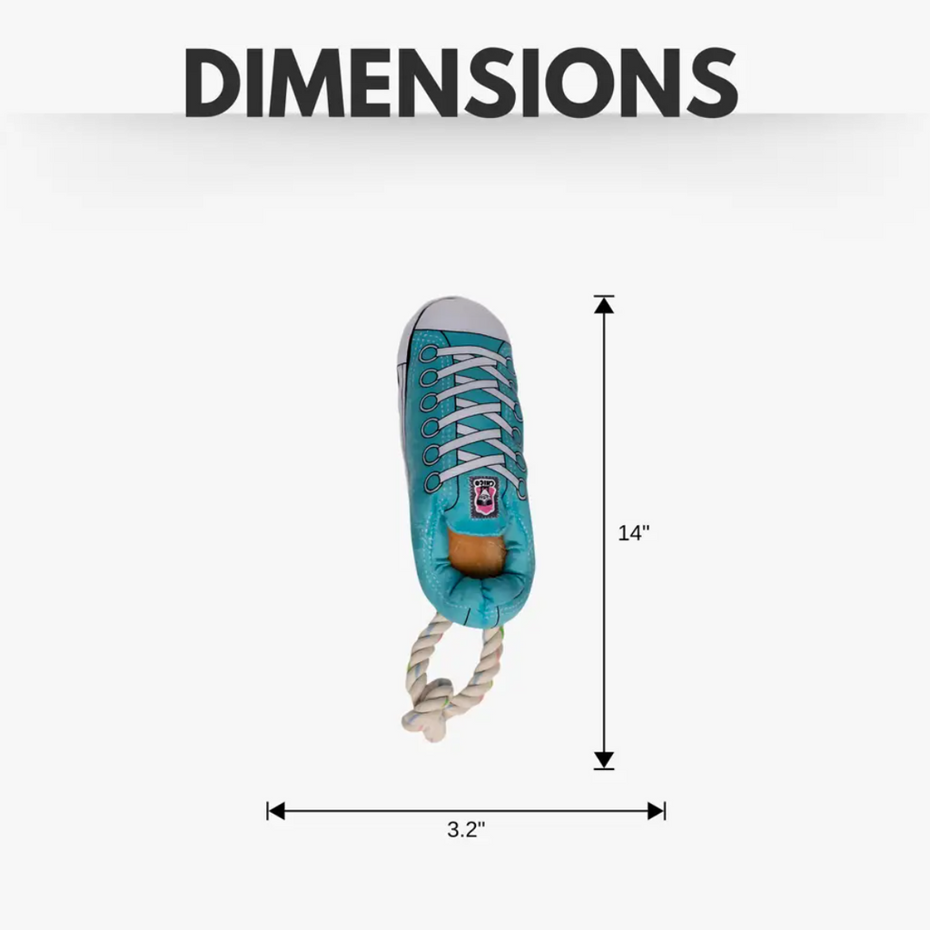 Crafted from non-toxic materials, this plush sneaker is both safe and durable, making it a reliable choice for dogs of all sizes. Great for retro lovers and hipsters alike. Not suitable for aggressive chewers!